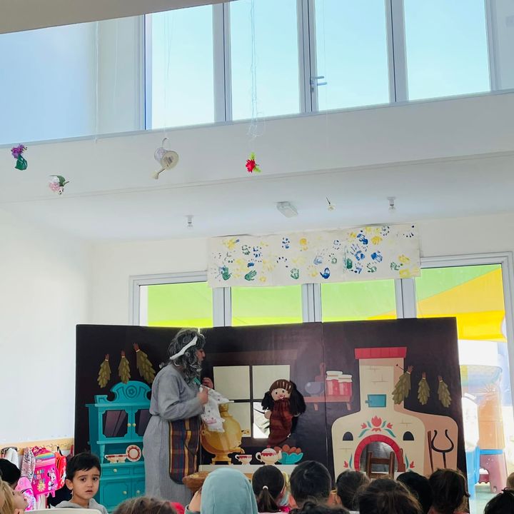 Σήμερα στο σχολείο μας, μας επισκέφτηκε η «Ομάδα Χρώματα», της Δανάης Χριστού, με τίτλο «Με ένα καπέλο, γίνομαι ότι θέλω!»! Η αλεπού, μας παρουσίασε τη καπελαρια της.. Και έτσι γίναμε, Σεφ.. Φτιάξαμε παγωτό.. Γίναμε παλιάτσοι και κάναμε τρελες… Αλλά και μικρά μαϊμουδάκια και κάναμε σκανδαλιές! Τέλος, γίναμε ζωγράφοι και κάναμε τη δίκη μας έκθεση ζωγραφικής…Και φυσικά τη παρακολουθήσαμε μικροί και μεγάλοι!
