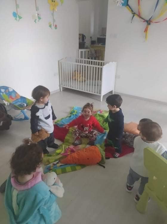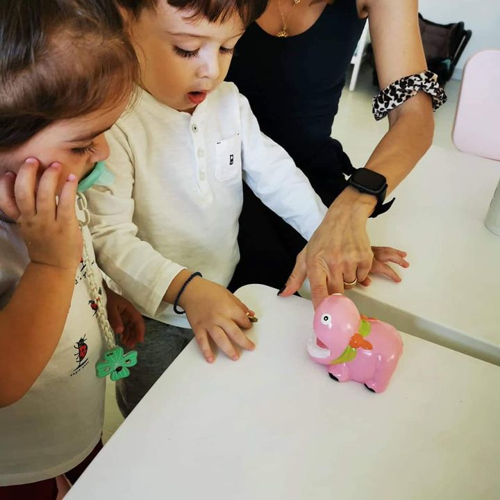 Τμήμα 2-3 χρόνων - «Λαστιχάκια» (Πειραματικό παιχνίδι κατά τη διάρκεια ελεύθερου παιχνιδιού το πρωί): Τα παιδιά προσπαθούν να περάσουν τα λαστιχάκια στα διαφορά αντικείμενα, χρησιμοποιώντας τα λεπτά τους άκρα και την απαραίτητη δύναμη για να ανοίξουν το λαστιχάκι! (Κινητικός τομές - Λεπτή κινητικότητα) Ταυτόχρονα, τα παιδιά παρατηρούν ότι τα αντικείμενα έχουν διαφορά μεγέθη και για να περάσει το λαστιχάκι, πρέπει να καταβάλουμε διαφορετική δύναμη για να το επεκτείνουμε! (Γνωστικούς τομέας) Επίσης, κάποια παιδάκια αποφάσισαν να συνεργαστούν και να βοηθήσουν το ένα το άλλο! (Κοινωνικός τομέας)